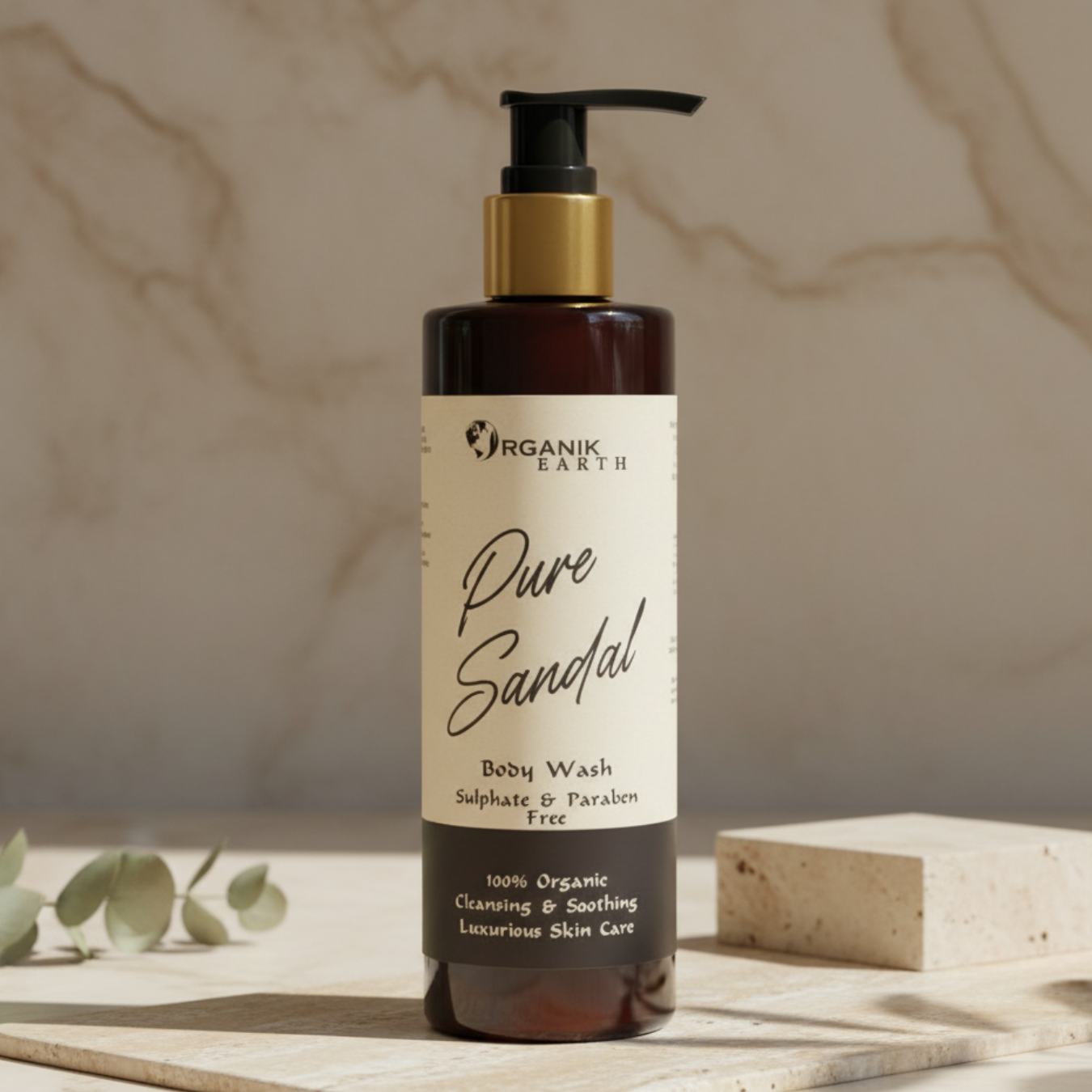 Experience timeless indulgence with Organik Earth’s Pure Sandal Body Wash. This gentle cleanser combines sandalwood extract, aloe vera, and coconut-derived surfactants to remove impurities while maintaining natural moisture. The earthy, soothing scent of sandalwood calms the mind and leaves skin soft, smooth, and subtly fragrant.