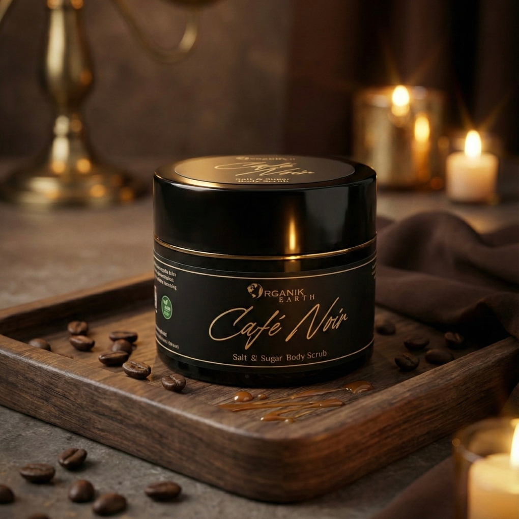 Café Noir is a luxurious salt and sugar body scrub crafted to awaken tired skin and restore its natural smoothness. Gentle sugar crystals buff away dead skin cells while mineral salt helps cleanse and detoxify the skin. Infused with the rich aroma of coffee, this scrub revitalises the senses and transforms your shower into an energising spa ritual. With regular use, skin feels polished, toned, and visibly refreshed—never dry or irritated.