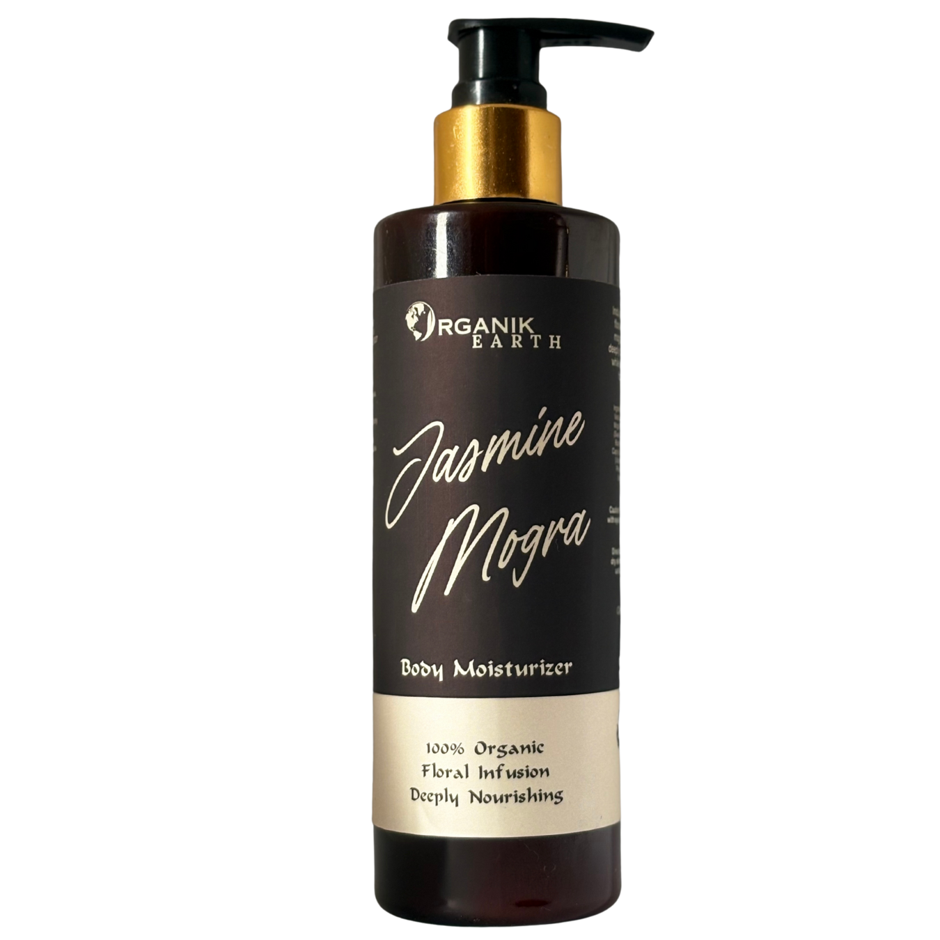 Indulge your skin with the luxurious floral essence of organic jasmine mogra. This rich body moisturizer deeply nourishes and softens your skin while leaving a captivating, lingering fragrance of fresh jasmine.