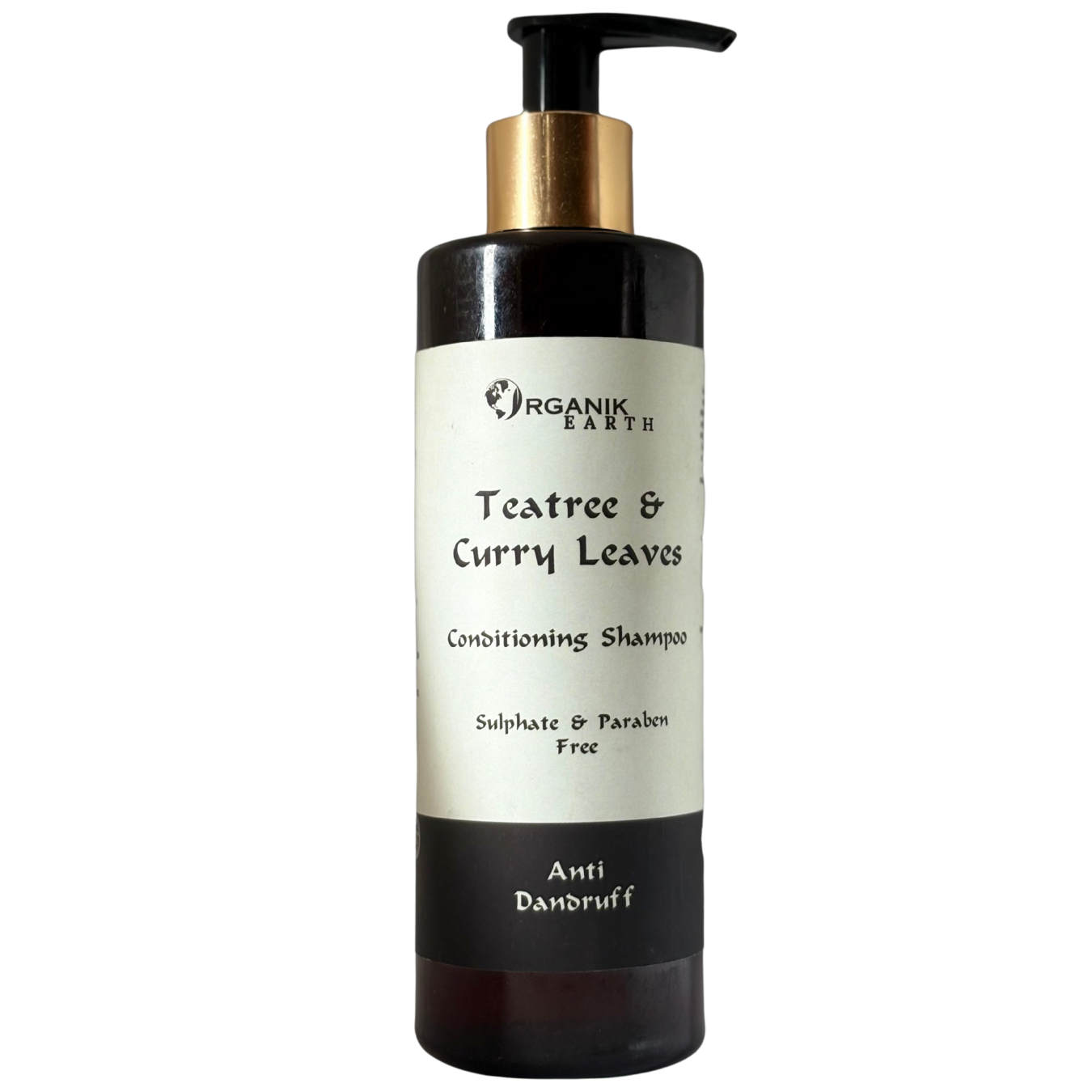 Tea tree & Curry leaves conditioning shampoo, sulfate and paraben free, effectively treats dandruff. Tea tree oil’s antifungal properties soothe the scalp, reduce itchiness, and prevent dandruff. Curry leaves strengthen hair follicles, reduce hair fall, and promote healthy scalp. Together, they cleanse and nourish the scalp, leaving hair dandruff-free and healthy.